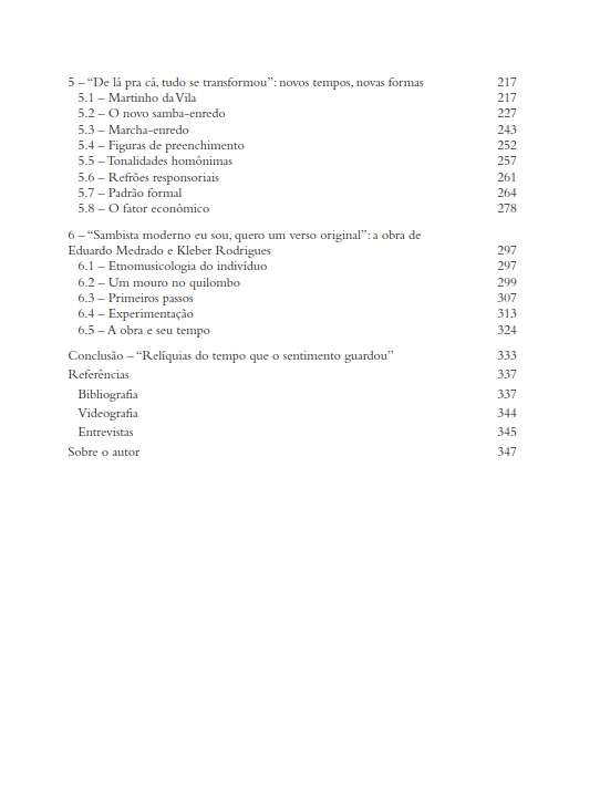 Trata-se de uma leitura atraente não apenas para quem é apaixonado por samba-enredo, mas também para quem se interessa pelas transformações experimentadas pelas escolas de samba e pela sociedade.