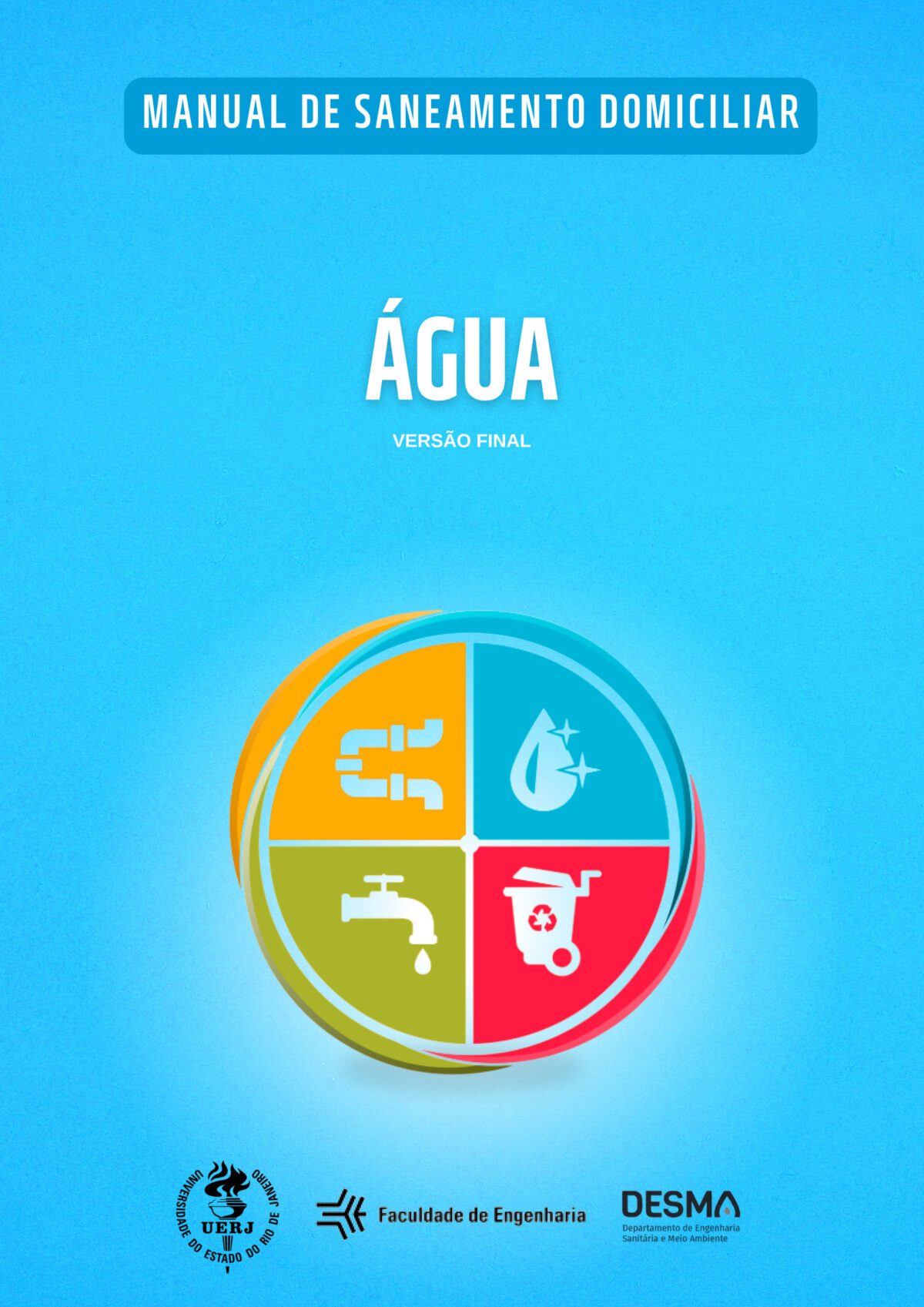 A presente obra reúne os Manuais de Saneamento Domiciliar, desenvolvidos pelo Escritório Modelo de Saneamento Domiciliar do Departamento de Engenharia Sanitária e Ambiental (DESMA/FEN/UERJ), com o suporte de seu corpo docente e discente, tendo como objetivo orientar a população mais vulnerável e promover melhorias sanitárias e ambientais em seus domicílios. De forma acessível, lúdica e ilustrada os manuais abordam as quatro vertentes do saneamento básico — Resíduos Sólidos, Esgotamento Sanitário, Água e Drenagem Urbana — apresentando boas práticas e soluções sustentáveis e de baixo custo, que podem ser implementadas nas residências, gerando melhores condições de saneamento e economia de recursos. Disponibilizados em formato digital, os manuais visam democratizar o conhecimento, apoiar políticas públicas e fortalecer ações de extensão universitária, além de capacitar estudantes de engenharia para a aplicação dos conceitos em contextos reais. Duas versões complementares já se encontram em desenvolvimento: uma de cunho mais técnico, voltada a profissionais da área, e outra, com linguagem mais coloquial e lúdica, voltada para um público mais leigo.